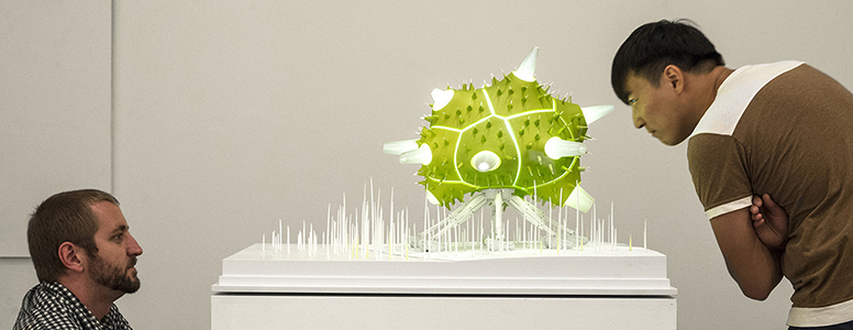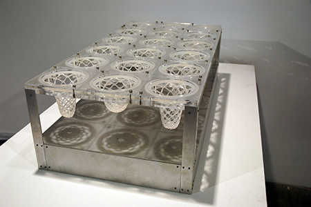 The ELICITING ENVIRONMENTS | ACTUATING RESPONSE symposium included a curated exhibition of experiments, machinic prototypes and artifacts from the invited speakers and others. The exhibit took place in the Carnegie Mellon College of Fine Art’s Great Hall, and directly exposed visitors to interactive installations.