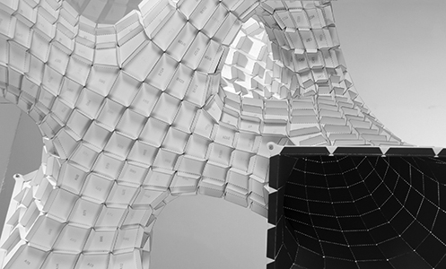 The Adaptive Pneumatic Frameworks research project currently serves as a preliminary prototype that explores the potential for dynamic and responsive pneumatic architectures. The aim of the research is to investigate a workflow and process for controlling kinetic, pneumatically driven behaviors that fluctuate between a range of parameters and constraints. It adapts current research in soft robotics to explore motor reflexes for pneumatic structures in architecture. The main topics of the research involve; pneumatics in architectural design, cast elastomer components, computation, physical computing and fluidic actuation.